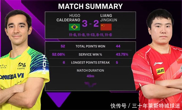发布日期:2025-10-30 07:45 点击次数:142WTT重庆冠军赛,男单1/4决赛,梁靖崑对阵巴西选手雨果,大胖在先丢两局后连扳两局追平,可惜决胜局没能像过往那样赢下来,最终以2-3(6-11、8-11、13-11、11-8、6-11)输掉比赛,无缘男单四强。