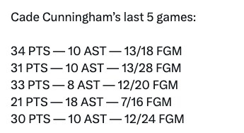 坎宁安天然是火箭思齐不敢思的优质控卫,近5场比赛的推崇如下,很难讲30+10和20+18到底哪一种推崇更可怕。