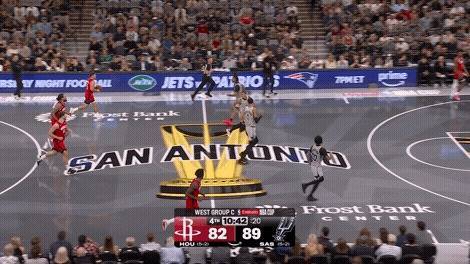 r在互掐对方箭头的比拼上,马刺就赢了一筹,文班依然打出了22分8篮板4助攻2封盖的全面推崇,杜兰特固然有24分进账,但在包夹之下出现了8次空幻,他的传球一度像不幸相通。